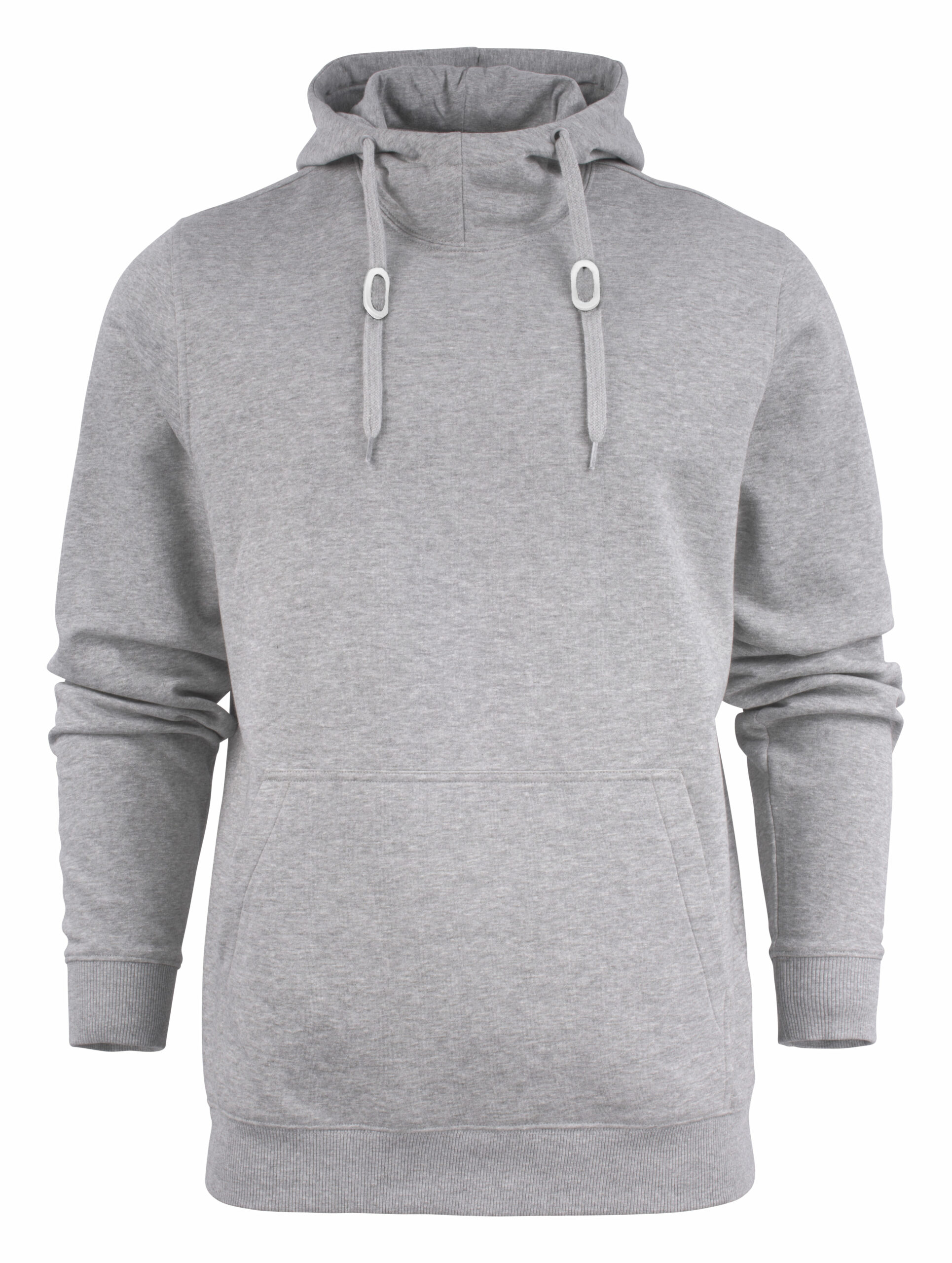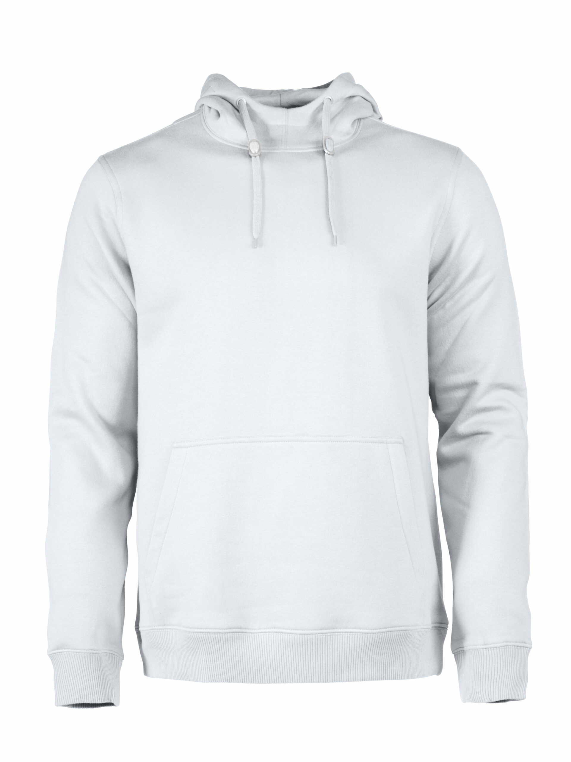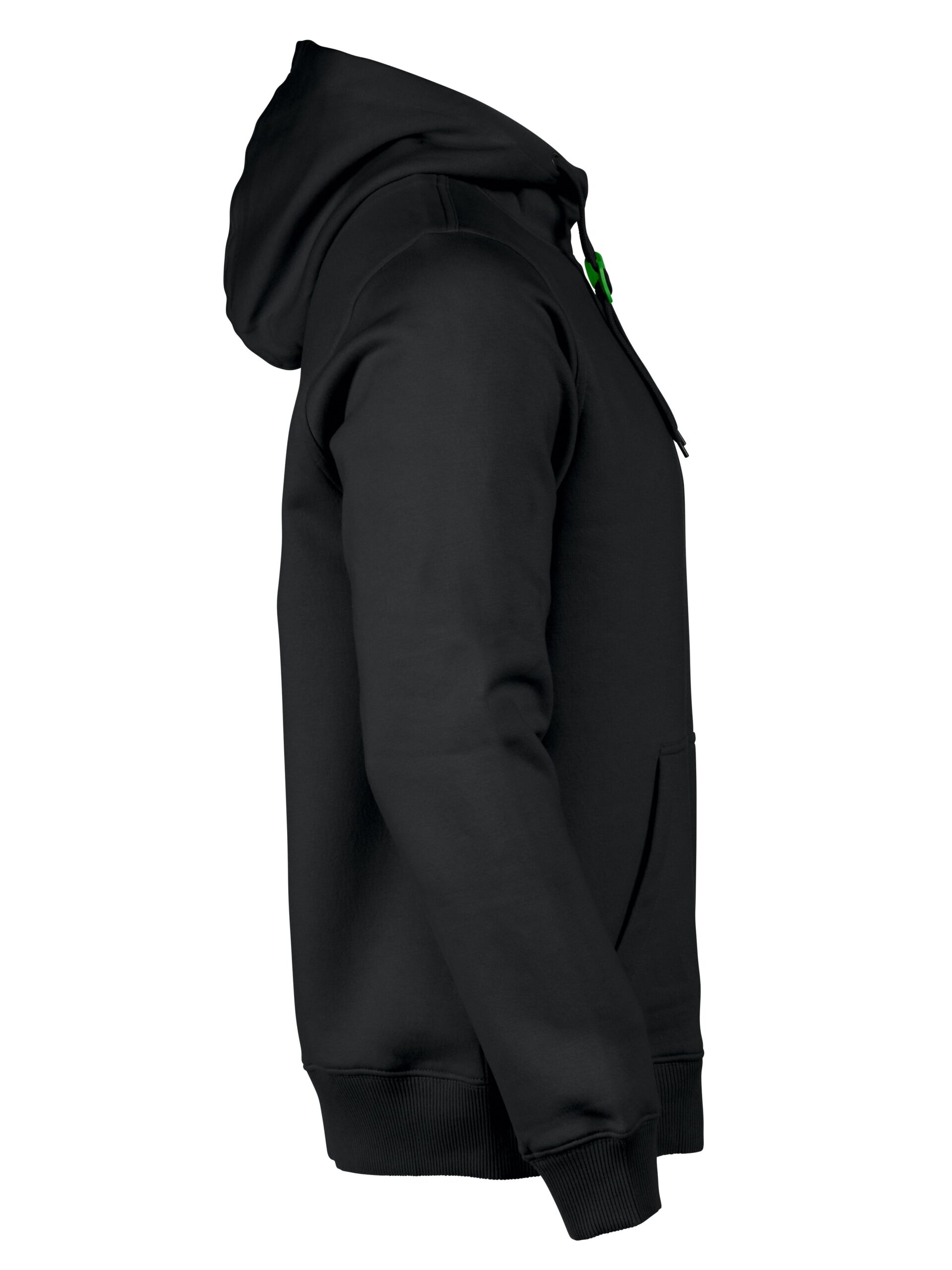 Sweatshirt à capuche pour femmes ou homme avec demi-lune au col, bords-côtes 2×2 aux poignets et à la taille.