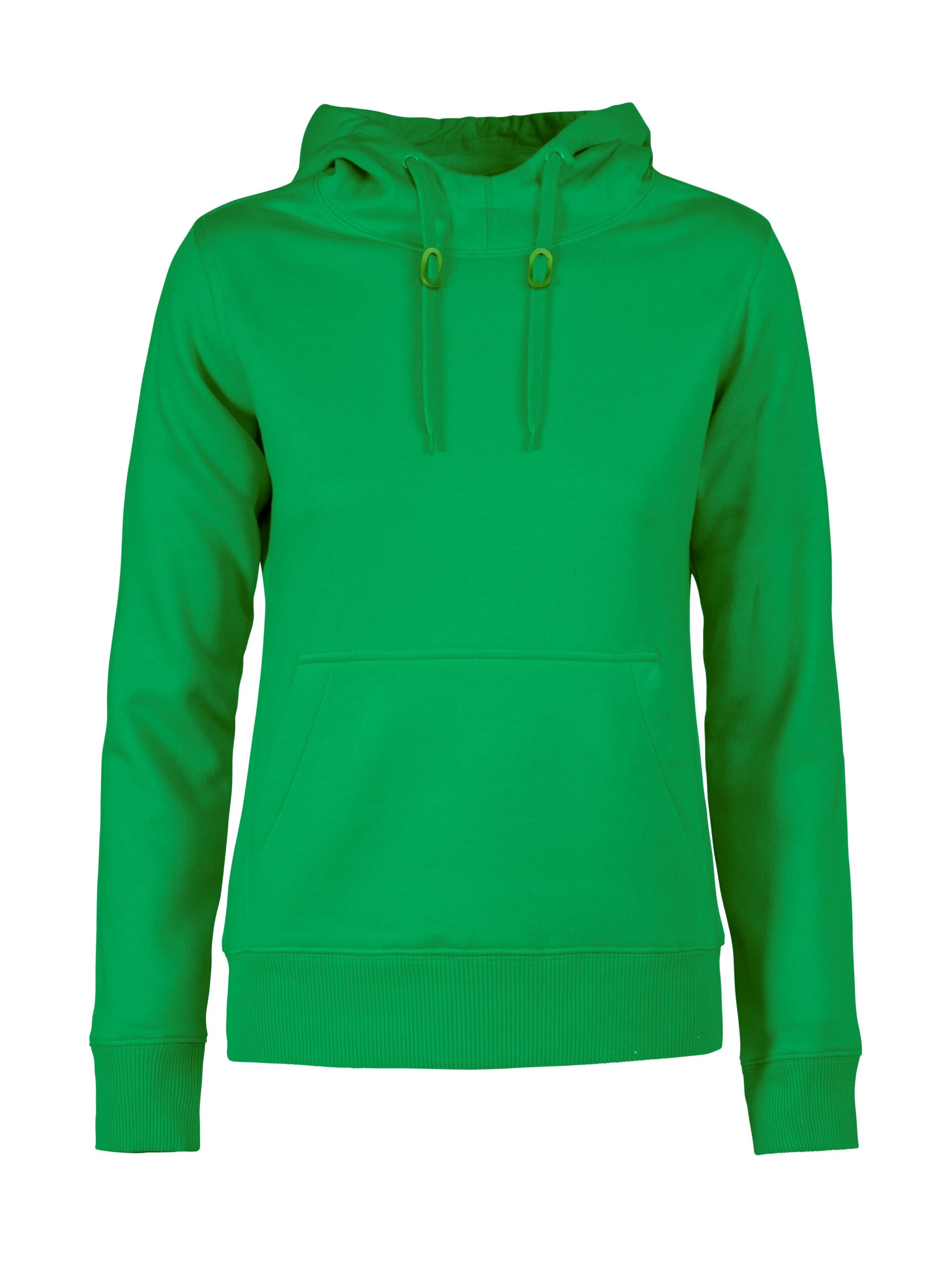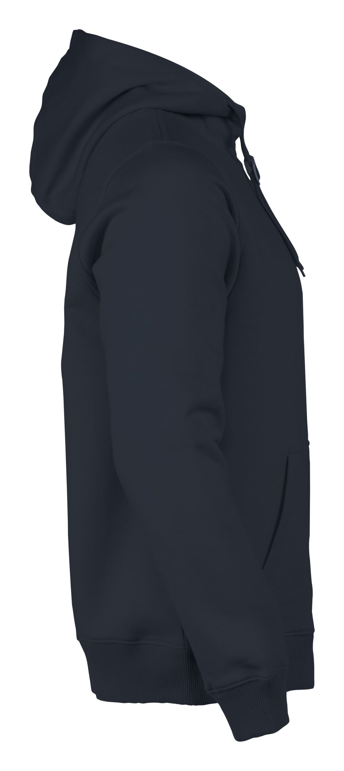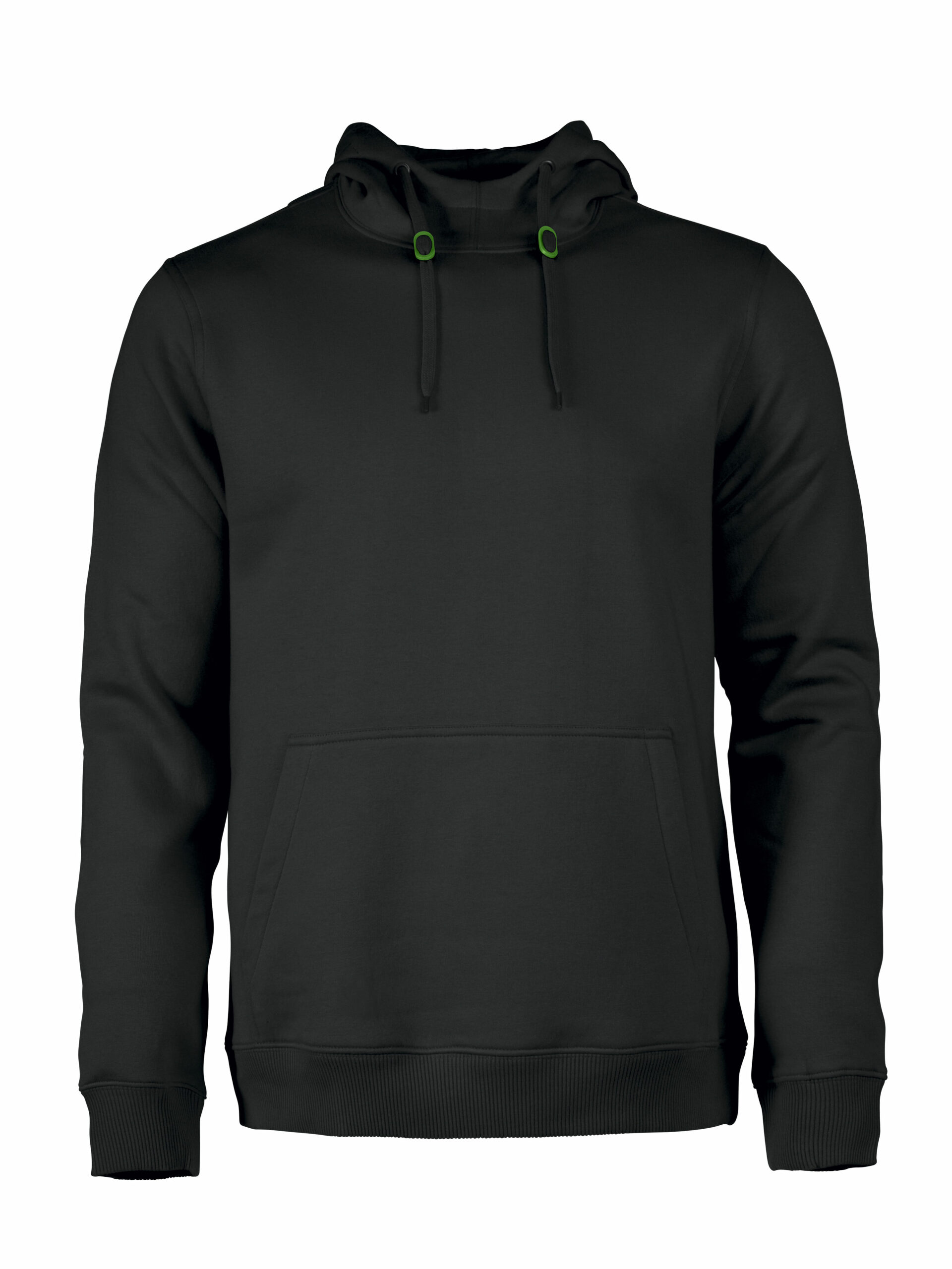 Sweatshirt à capuche pour femmes ou homme avec demi-lune au col, bords-côtes 2×2 aux poignets et à la taille.